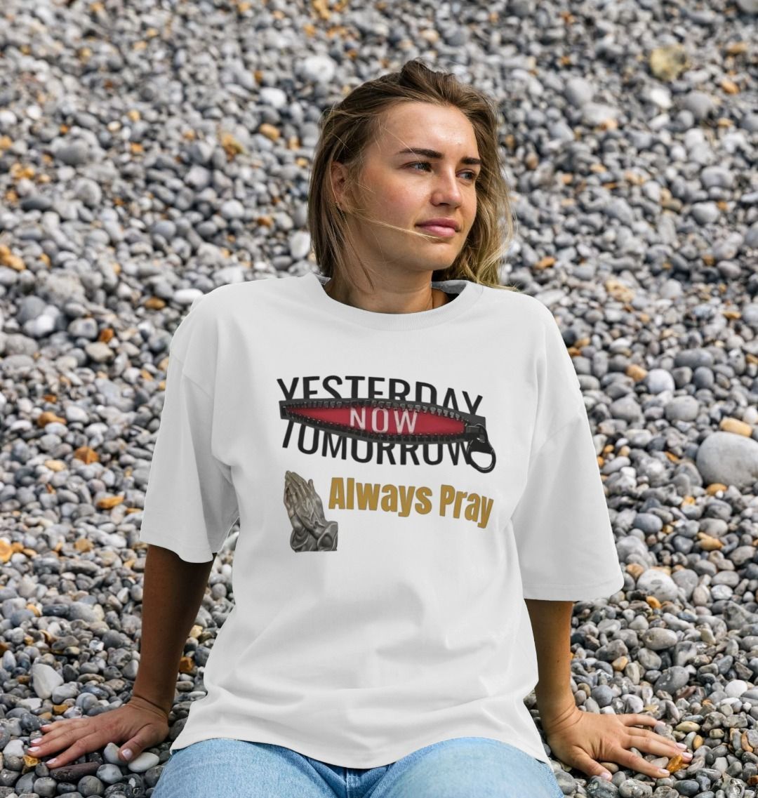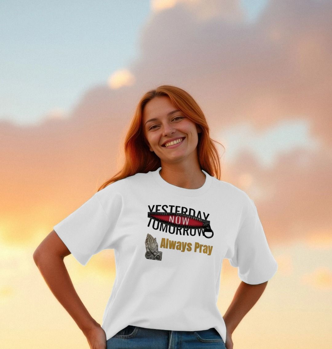Introducing the YNT Always Pray white T-shirt, a stylish and meaningful addition to your wardrobe. This shirt features a clean, minimalist design that prominently displays the phrase "Always Pray," serving as a reminder of the importance of faith and mindfulness in everyday life. Crafted from high-quality, breathable cotton, it ensures comfort and durability,