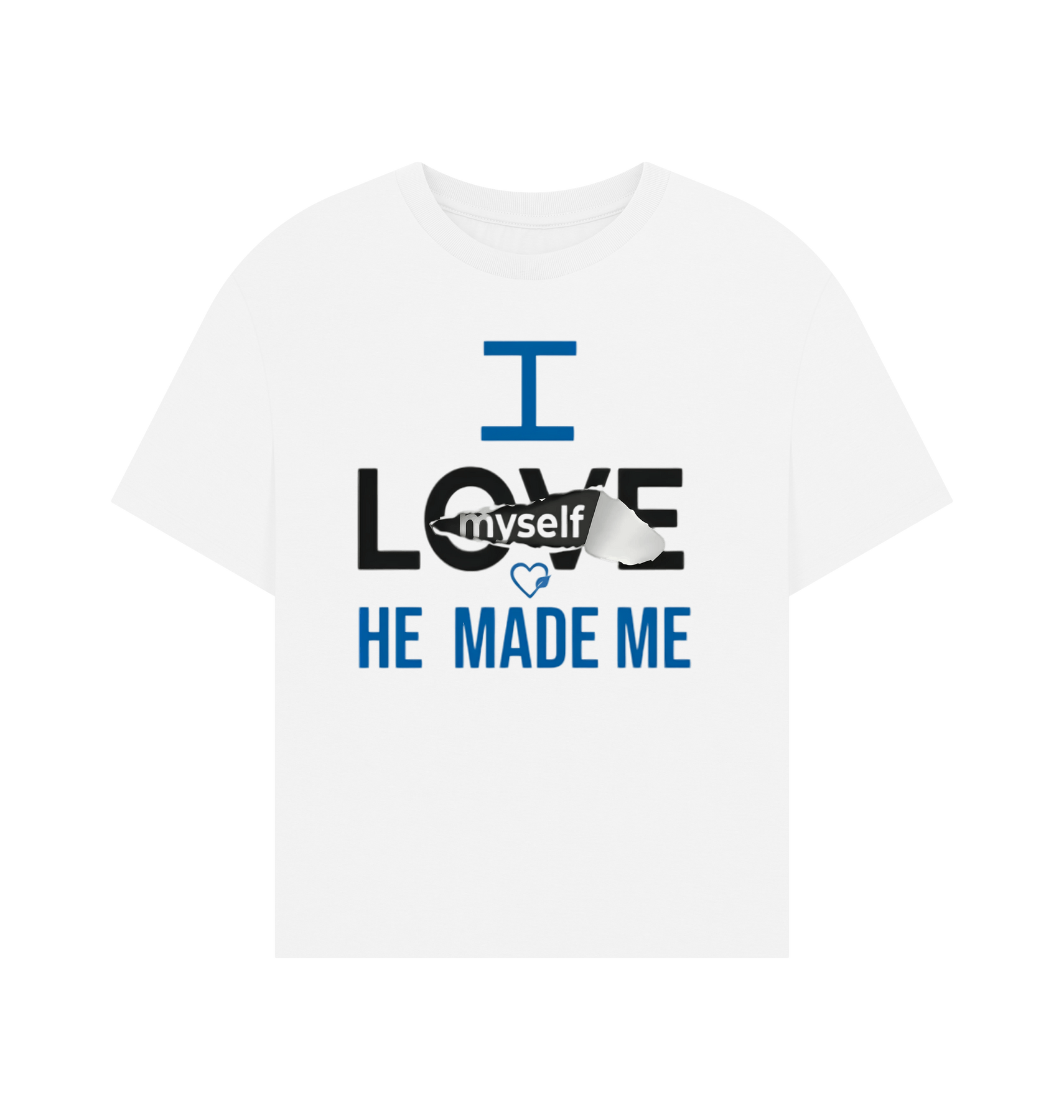 The I love myself white T-shirt adds a layer of purity and simplicity, the statement stands out boldly against a neutral background, Such apparel not only makes a fashion statement but also acts as a conversation starter, inviting discussions about self-love, faith, and the importance of nurturing one's mental and emotional well-being.